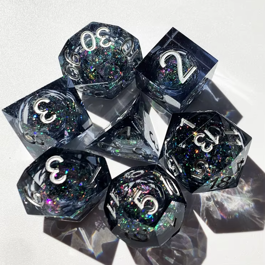 NEBULA 7-DIE SET GELATINOUS/WHITE$13.95This set contains 8 Nebula® Gelatinous™ dice with white numbers with the following shapes: 1 x 4-sided die 1 x 6-sided die 1 x 8-sided die 1 x 10-sided die 1 x tens 10-sided die 1 x 12-sided die 1 ...
