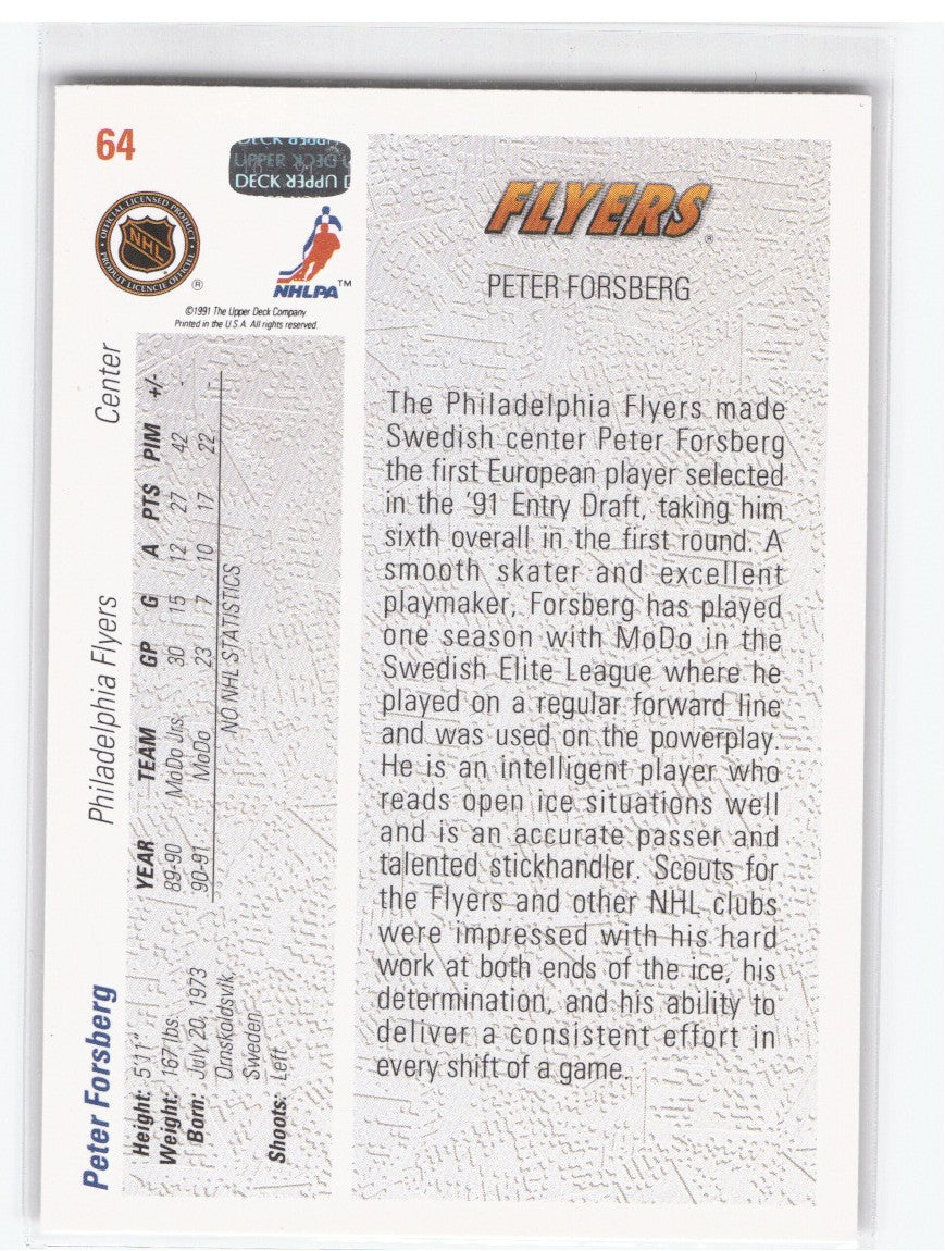 1991 Upper Deck 1991 Draft Choice #64 Rookie Rc Peter Forsberg