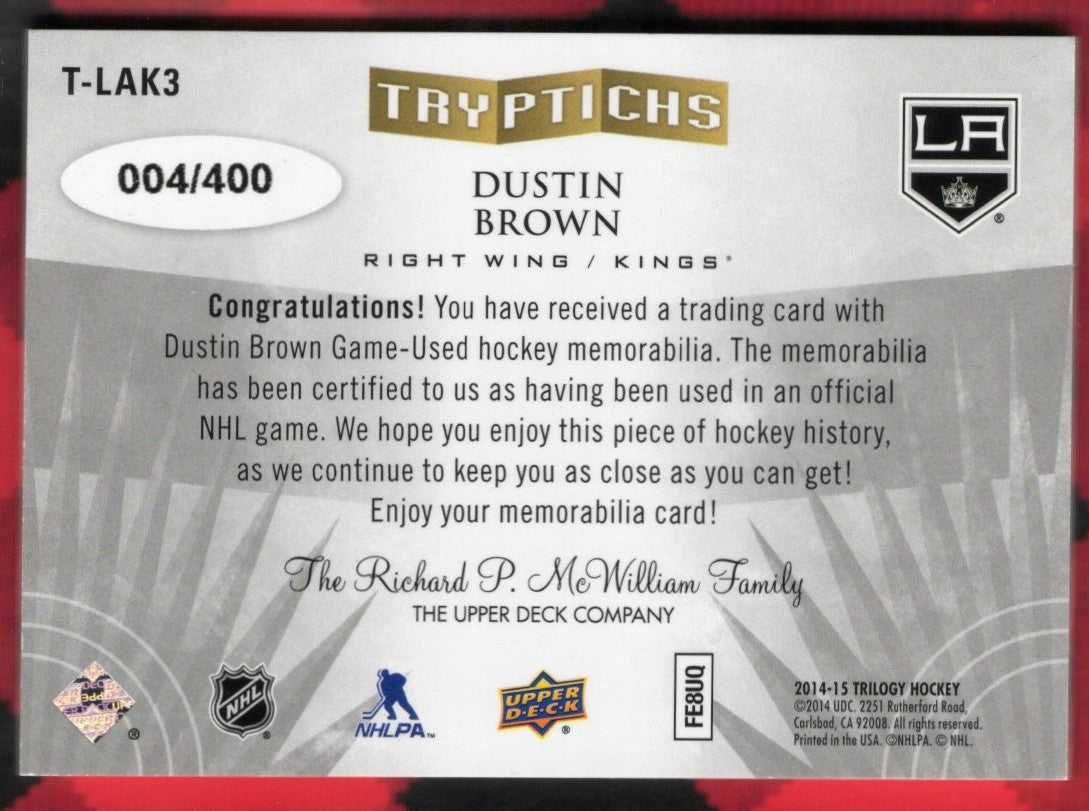 top2014-15 Upper Deck Trilogy Trytichs T-Lak3 Dustin Brown /400