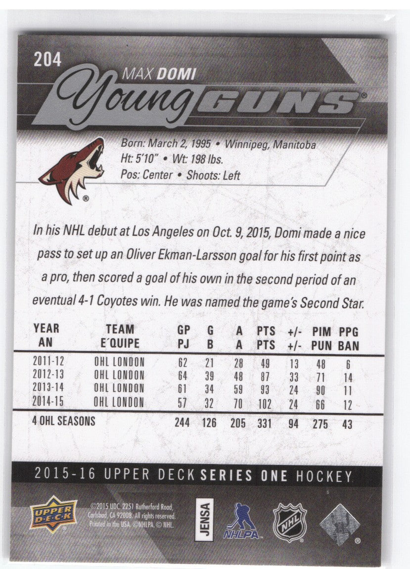 top2015-16 Upper Deck Series 1 Young Guns #204 Rookie Rc Max Domi