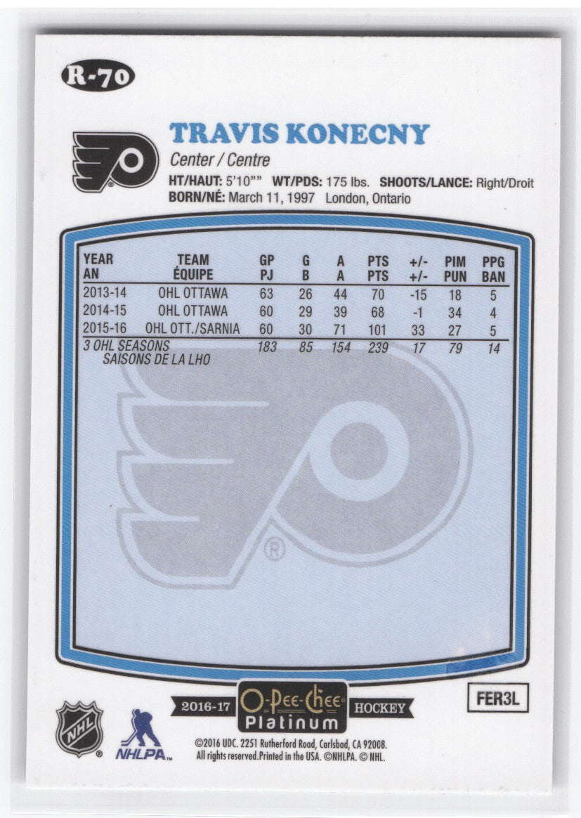 top2016-17 Upper Deck O-Pee-Chee Platinum Retro Rookie R-70 Rookie Rc Travis Konecny