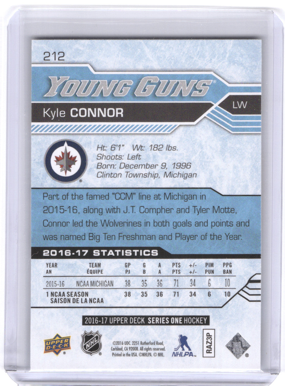 top2016-17 Upper Deck Series 1 Young Guns #212 Rookie Rc Kyle Connor