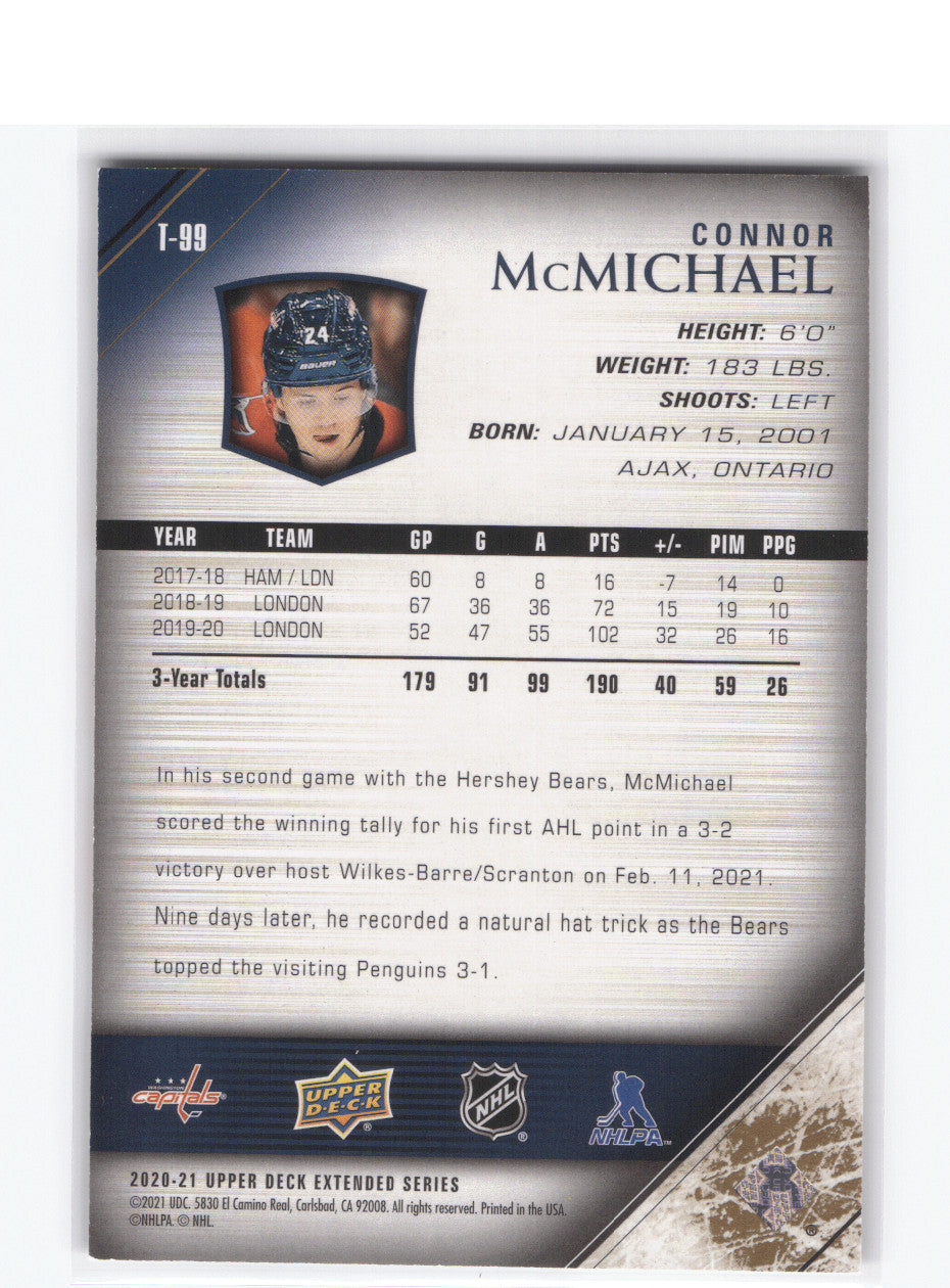 top2020-21 Upper Deck Extended Young Guns Ud Exclusive T-99 Rookie Rc Connor Mcmichael /100