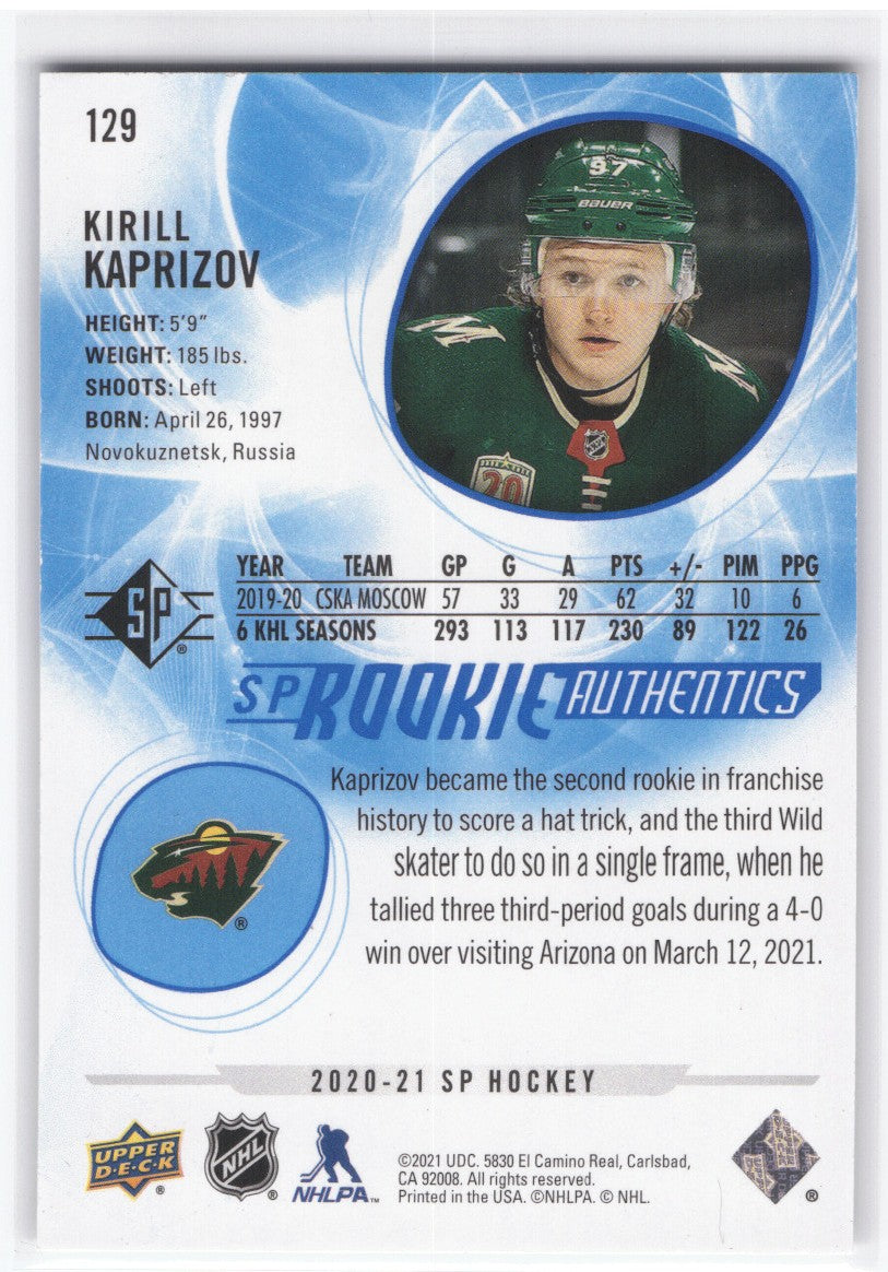 top2020-21 Upper Deck Sp Hockey Sp Rookie Authentics #129 Rookie Rc Kirill Kaprizov