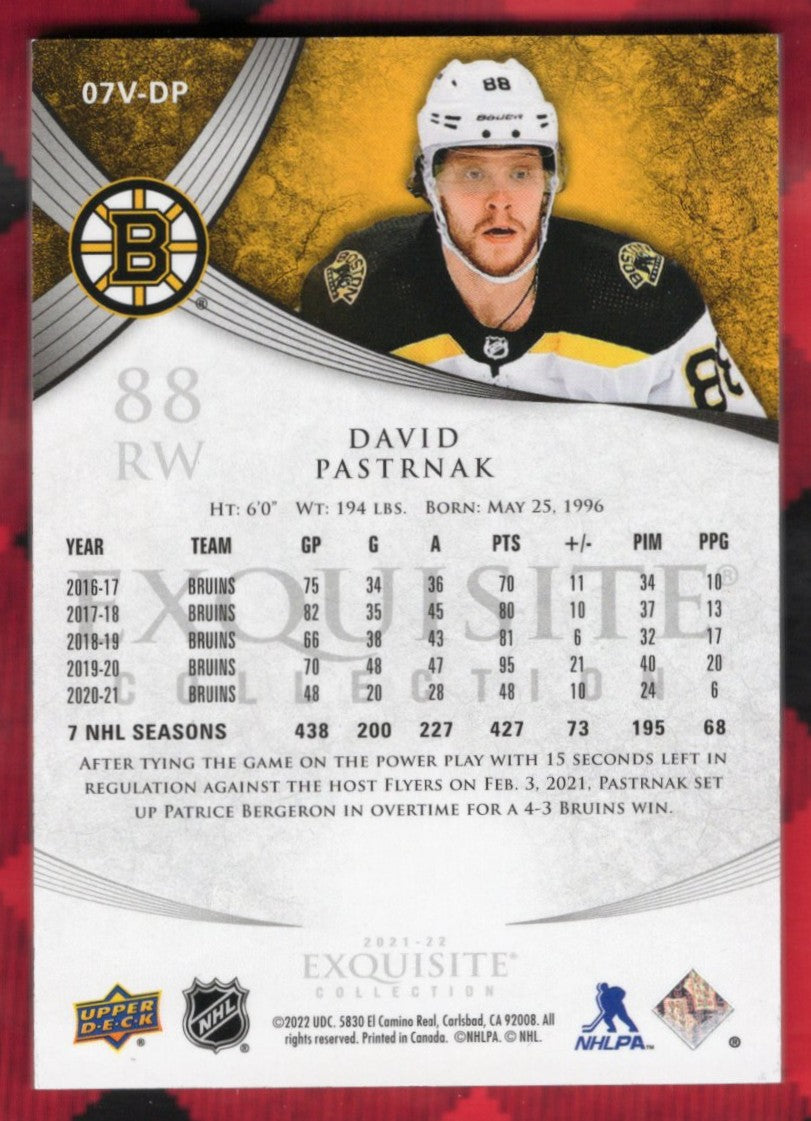 top2021-22 Upper Deck Exquisite Collection 07V-Dp David Pastrnak /299