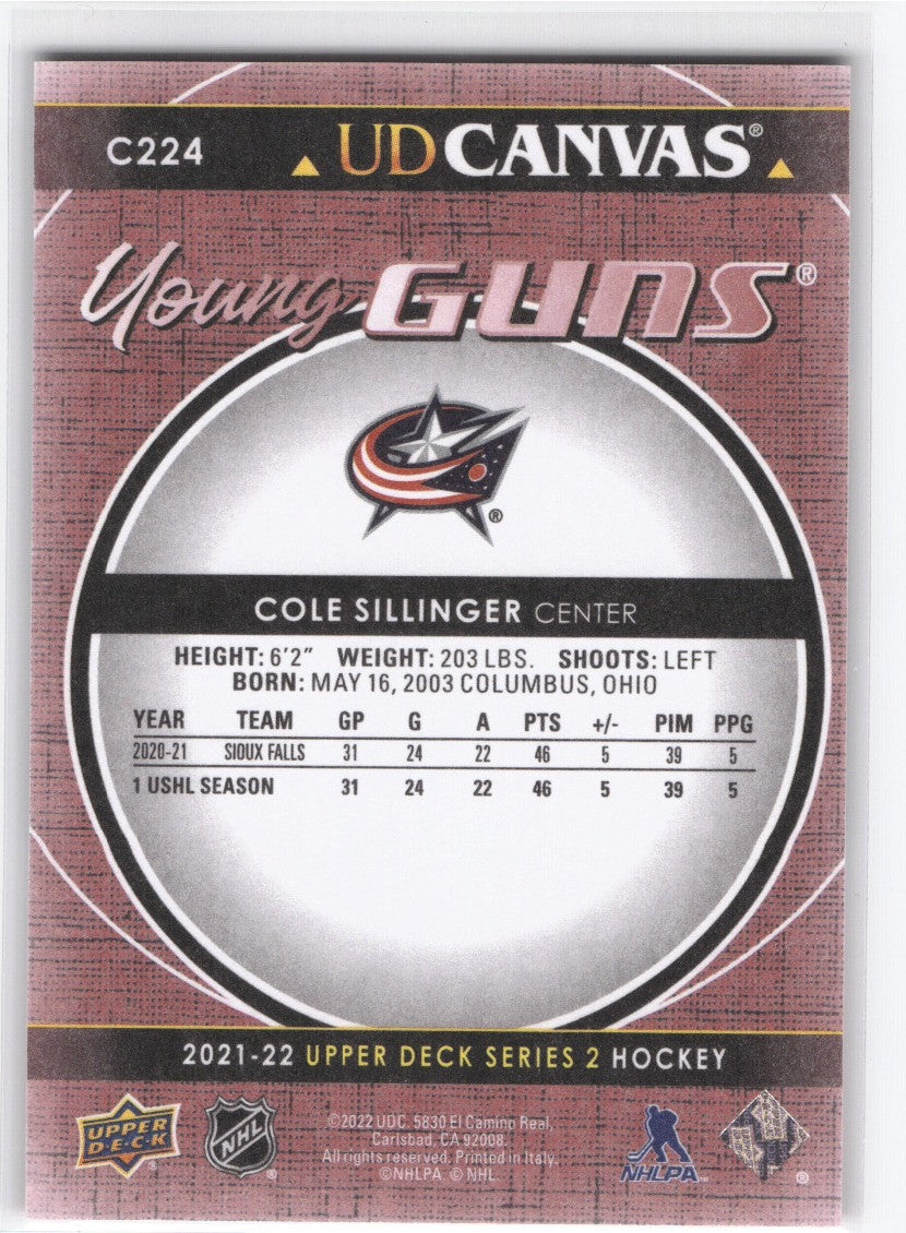 2021-22 Upper Deck Series 2 Young Guns Ud Canvas C224 Rookie Rc Cole Sillinger