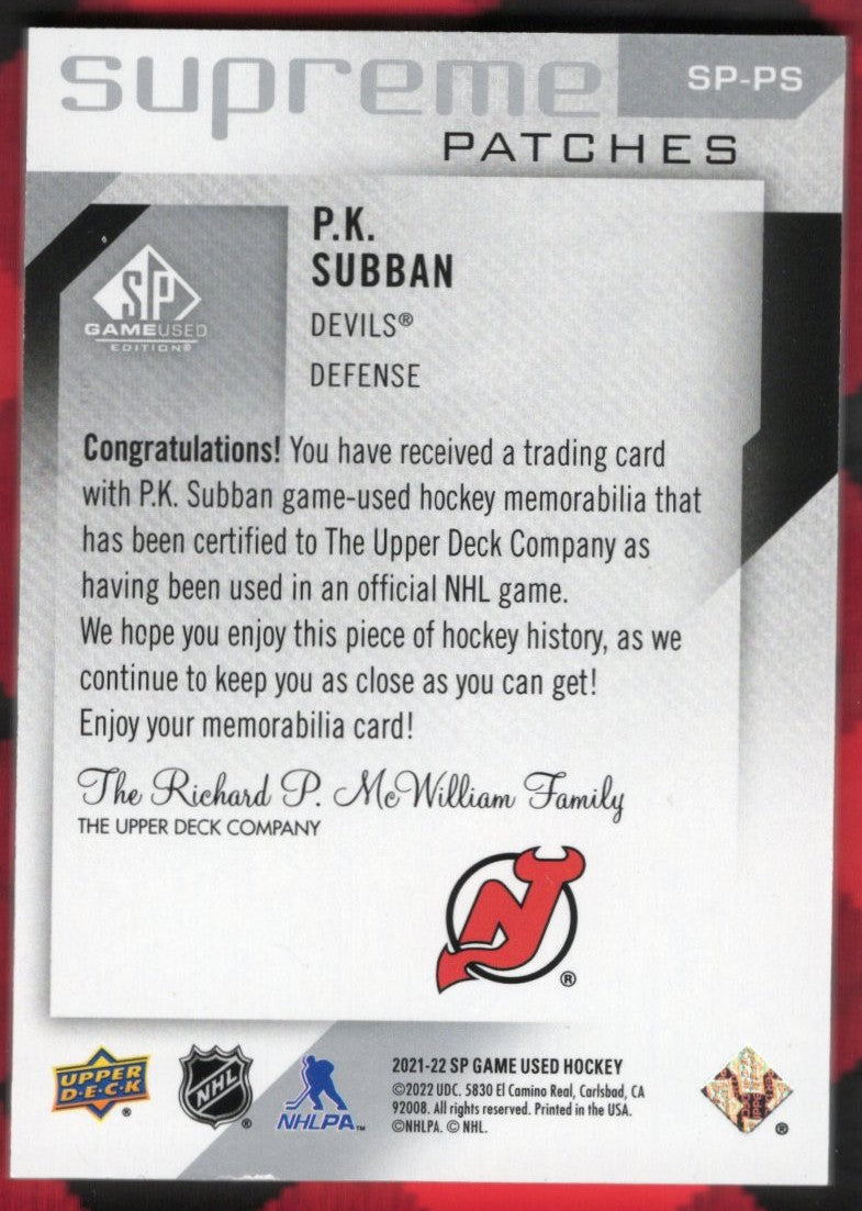 2021-22 Upper Deck Sp Game Used Supreme Patches Sp-Ps P.K. Subban /15