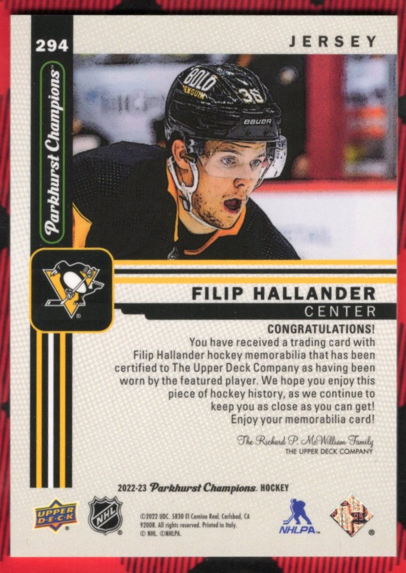 top2022-23 Upper Deck Parkhurst Champions Jersey #294 Rookie Rc Filip Hallander