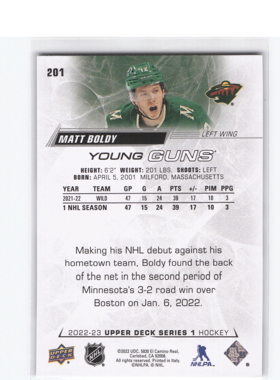 top2022-23 Upper Deck Series 1 Young Guns #201 Rookie Rc Matt Boldy