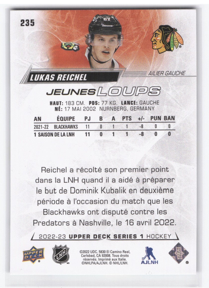 top2022-23 Upper Deck Series 1 Young Guns (Jeunes Loups) #235 Rookie Rc Lukas Reichel