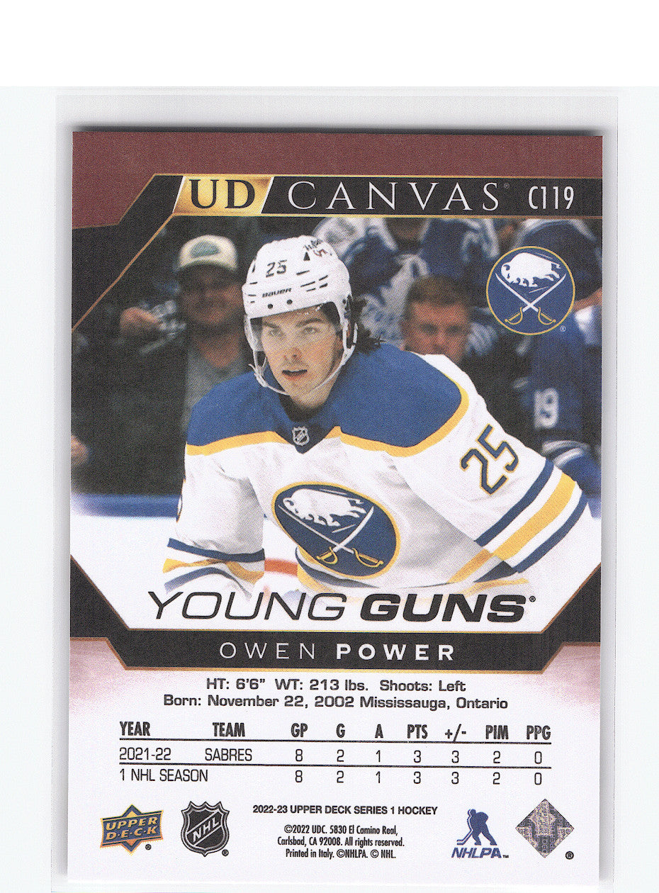 top2022-23 Upper Deck Series 1 Young Guns Ud Canvas C119 Rookie Rc Owen Power