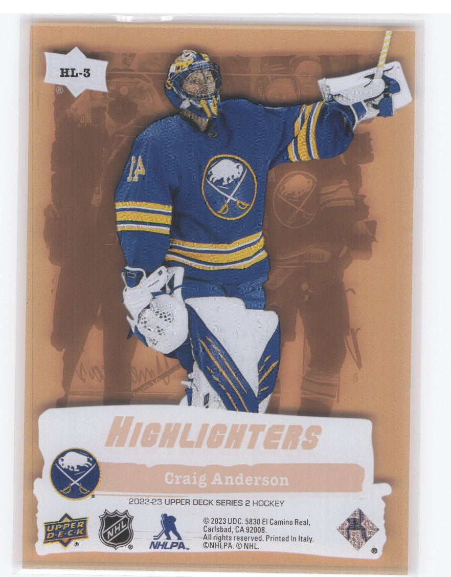 top2022-23 Upper Deck Series 2 Highlighters Hl-3 Craig Anderson