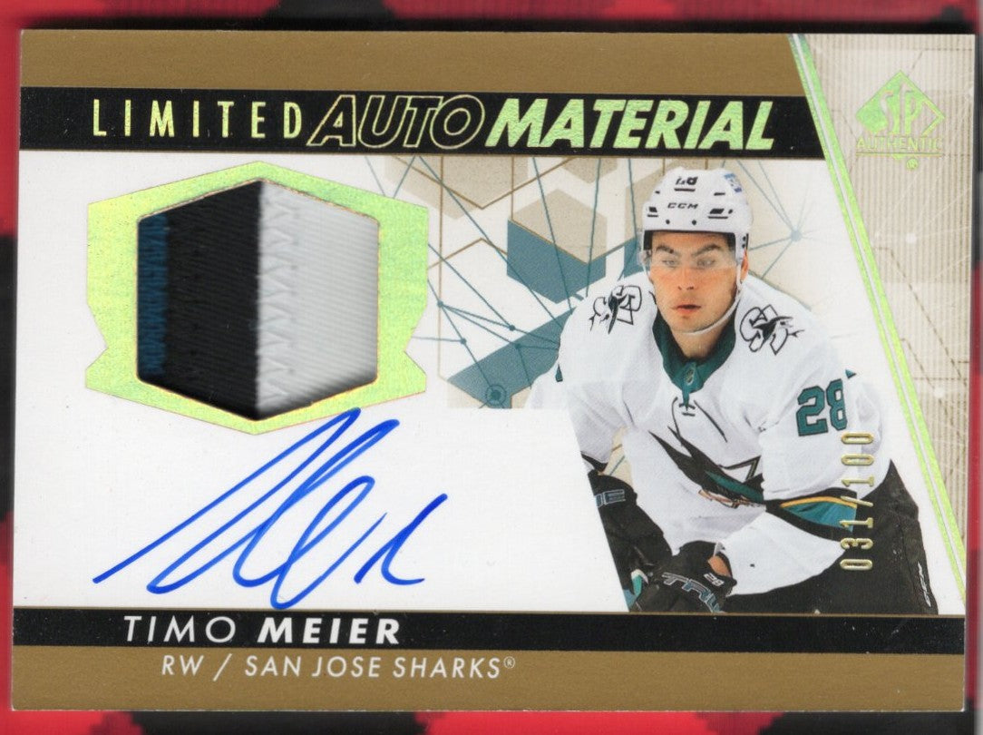 top2022-23 Upper Deck Sp Authentic Limted Auto Material #28 Auto Timo Meier /100