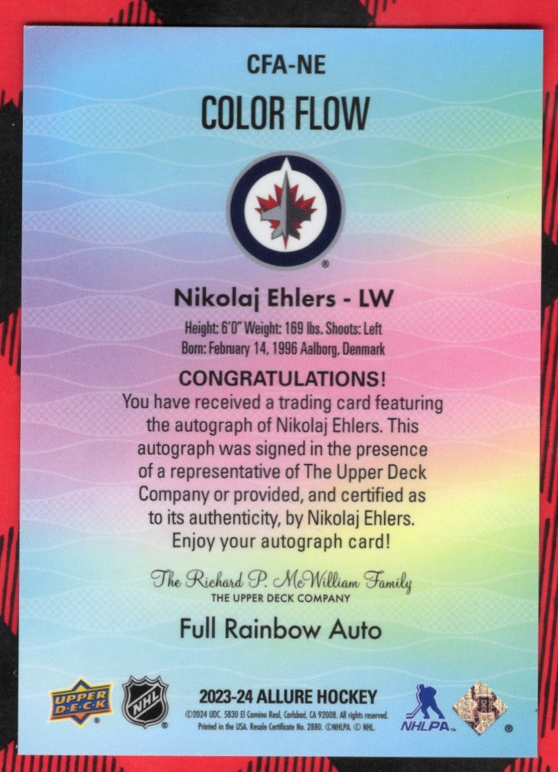 2023-24 Upper Deck Allure Color Flow Full Rainbow Auto Cfa-Ne Auto Nikolaj Ehlers
