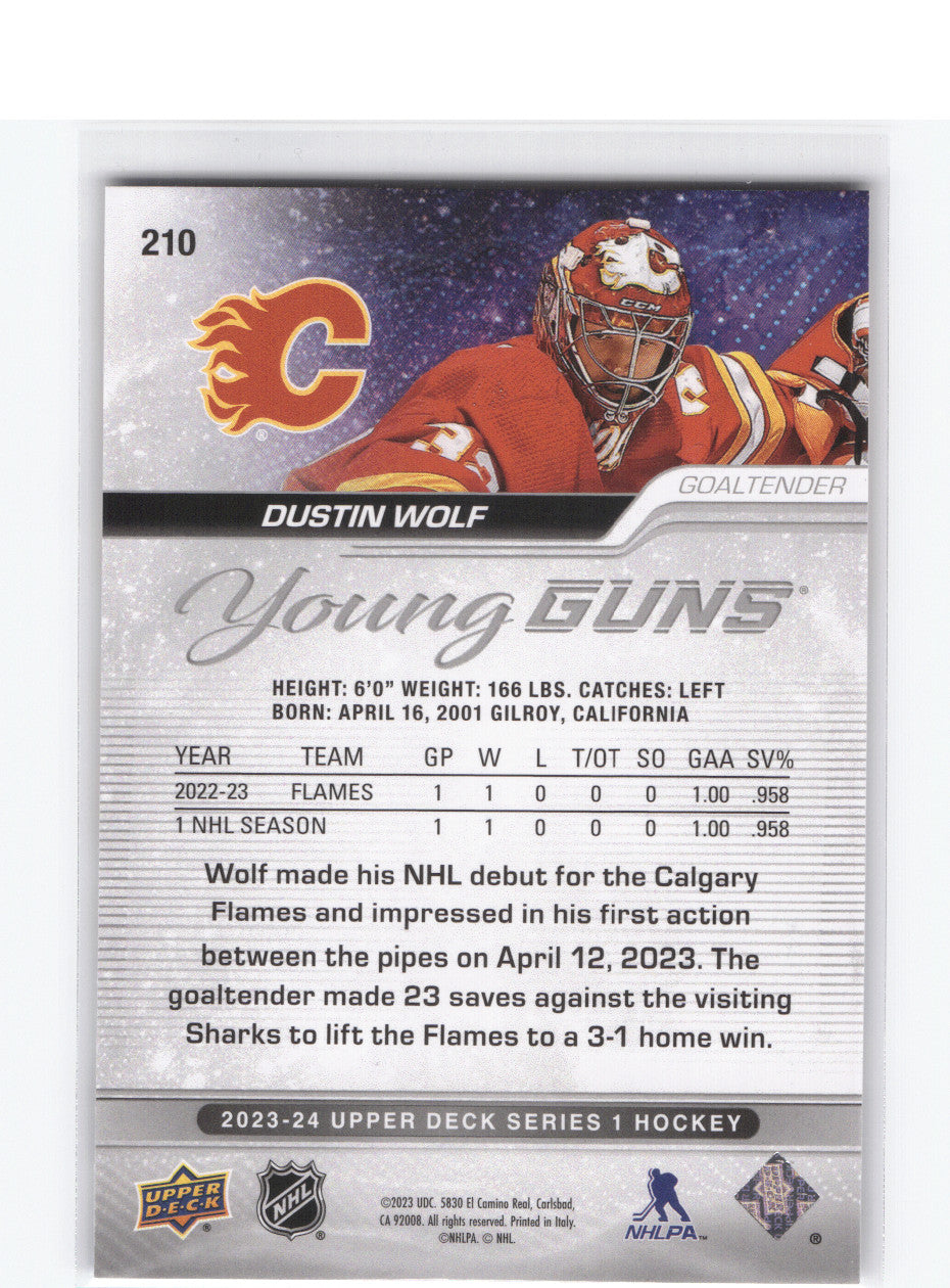 top2023-24 Upper Deck Series 1 Young Guns #210 Rookie Rc Dustin Wolf