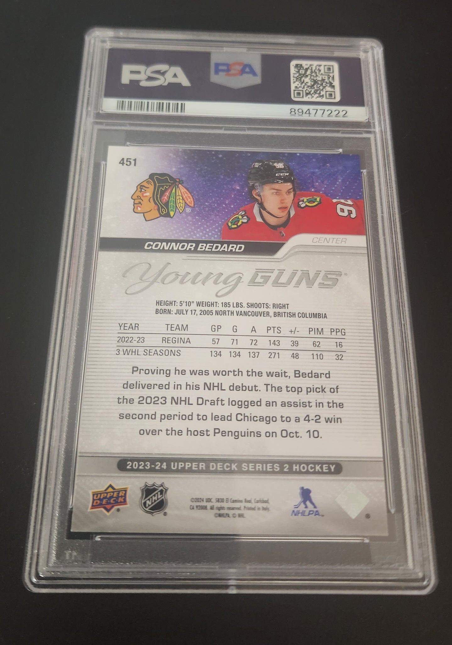 2023-24 Upper Deck Series 2 Young Guns #451 Rookie Rc Connor Bedard Psa 10
