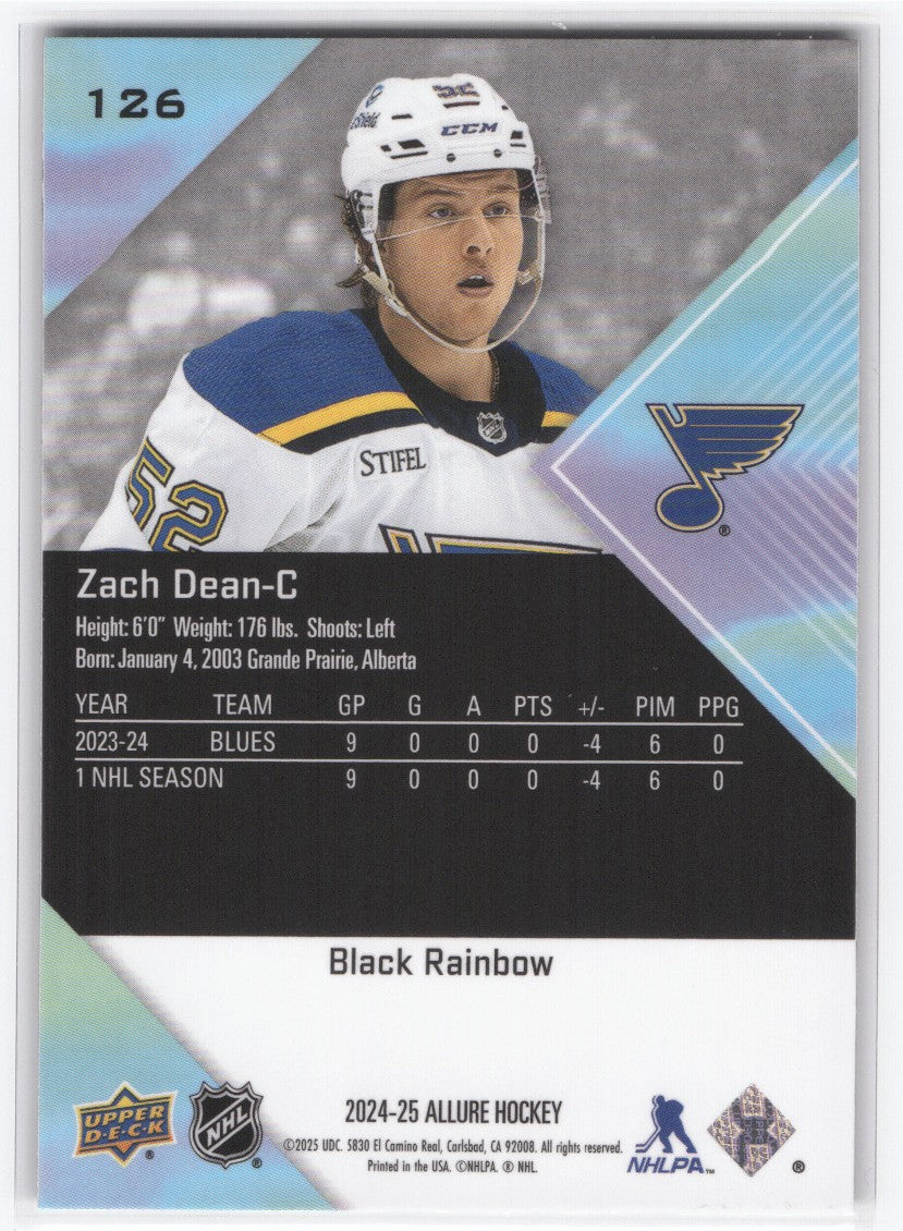 2024-25 Upper Deck Allure Black Rainbow Rookie #126 Rookie Rc Zach Dean