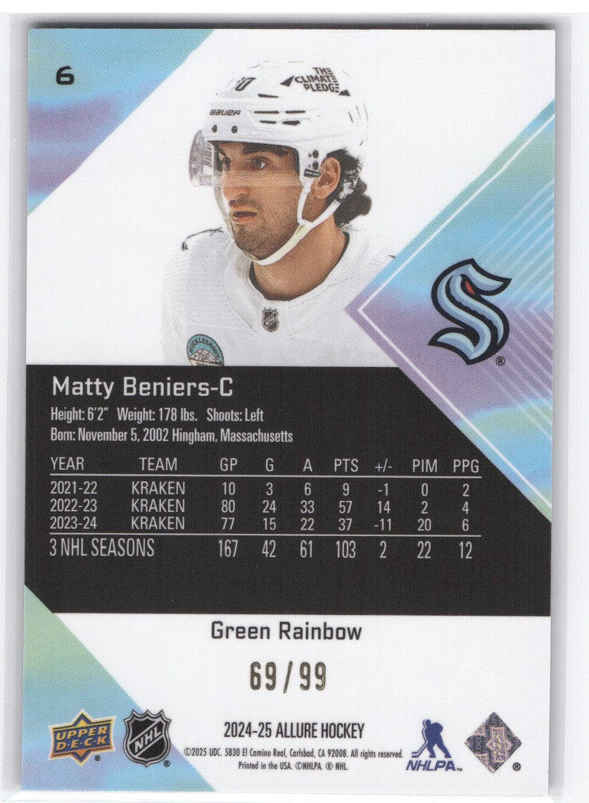 top2024-25 Upper Deck Allure Green Rainbow 69/99 #6 Matty Beniers /99