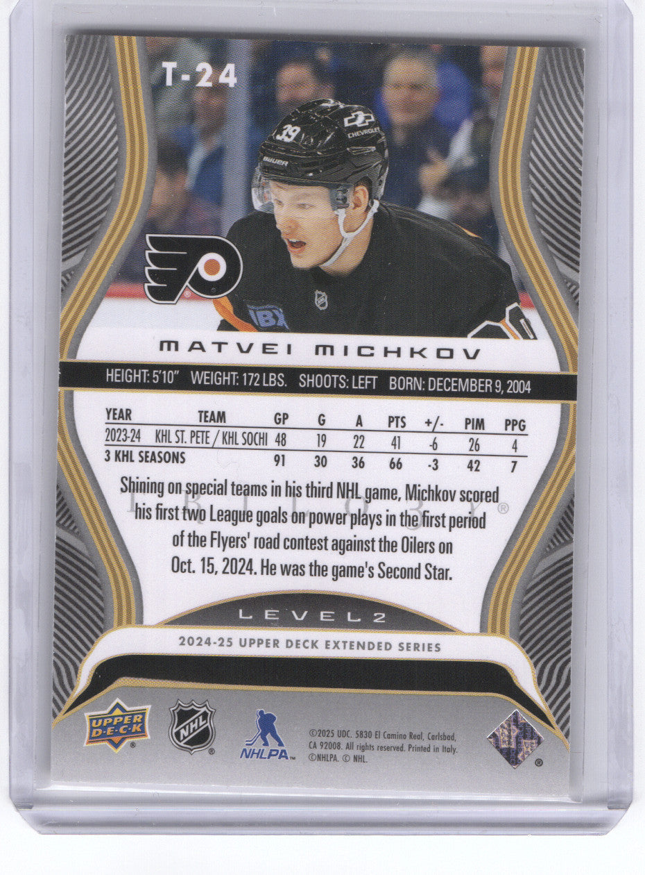 top2024-25 Upper Deck Extended Rookie Premieres T-24 Rookie Rc Matvei Michkov /499