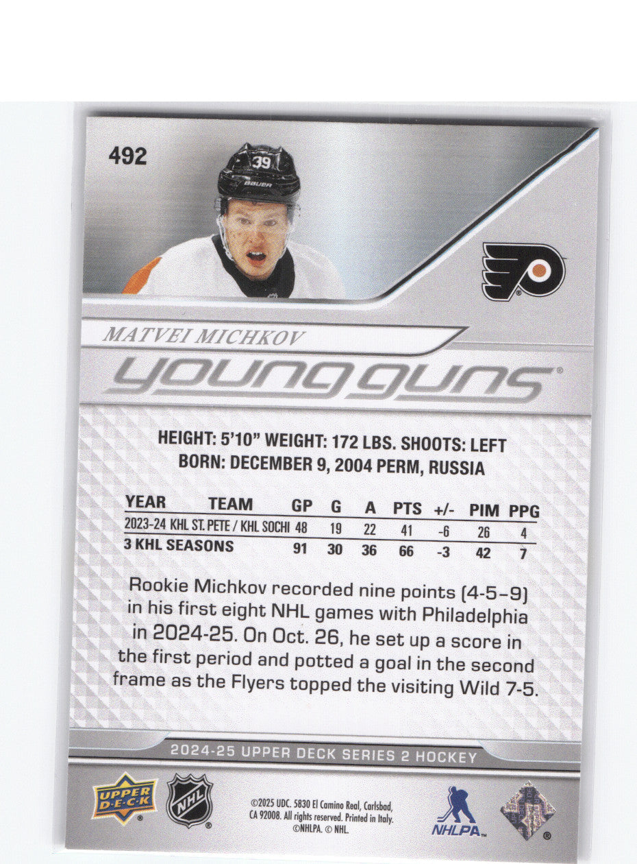 top2024-25 Upper Deck Series 1 Young Guns #492 Rookie Rc Matvei Michkov