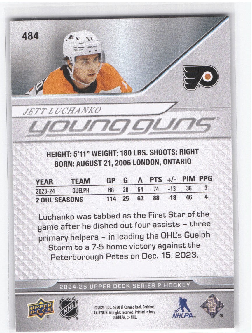 top2024-25 Upper Deck Series 2 Young Guns #484 Rookie Rc Jett Luchanko