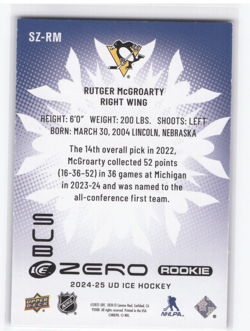 top2024-25 Upper Deck Ud Ice Hockey Sub Zero Sz-Rm Rookie Rc Rutger Mcgroarty /499