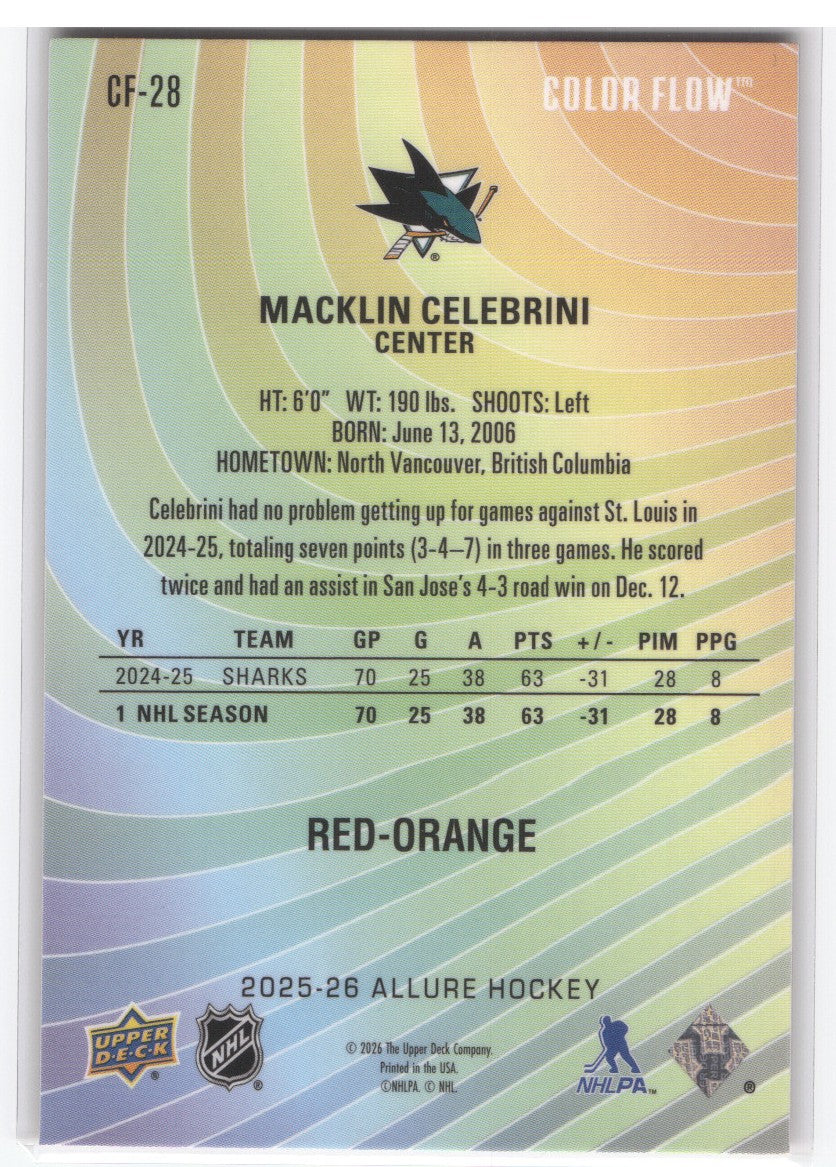 top2025-26 Upper Deck Allure Red Orange Cf-28 Macklin Celebrini