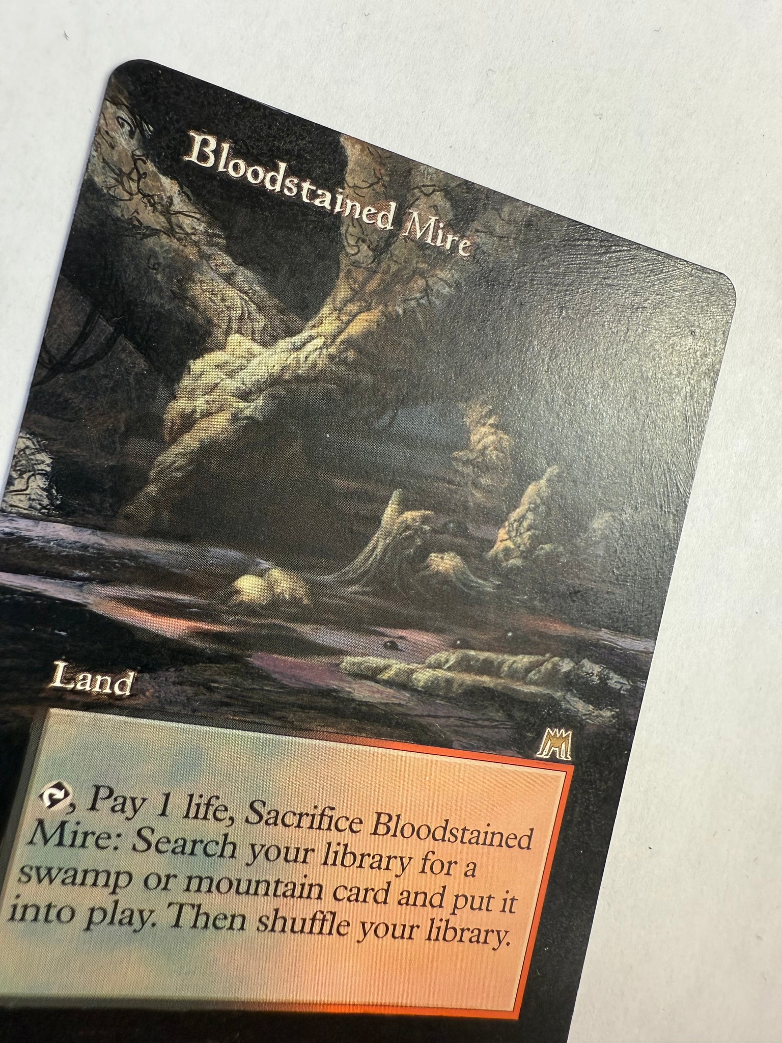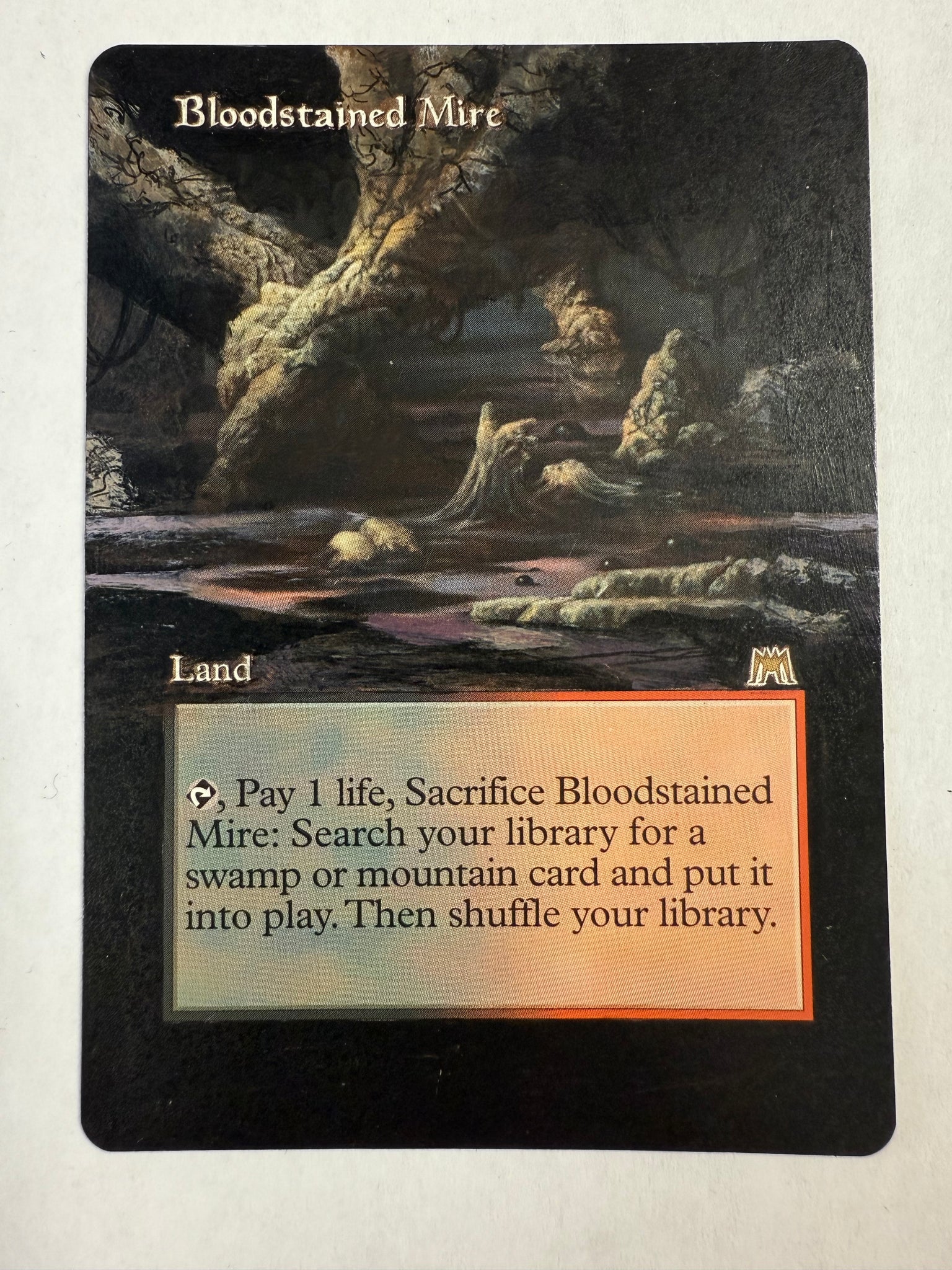 Regular Price $149.99Hurry! Only1units left in stock!STANDARD PRODUCT SHIPPINGIf you are purchasing a item that is not a Trading Card Single, you must choose the Expedited Shipping option. Failure to do so will result in a invoice for shipping or order cancellation.DISCOUNTED SHIPPINGAll TCG Singles orders over $100 will ship for a discounted rate. They will all be sent expedited with tracking in a bubble mailer and very well protected.CONTACT USYou can reach us anytime via our Facebook messenger or via email - charlottetown@exorgames.comHigh quality Borderless hand Altered art on authentic Bloodstained Mire from Onslaught. See photos.