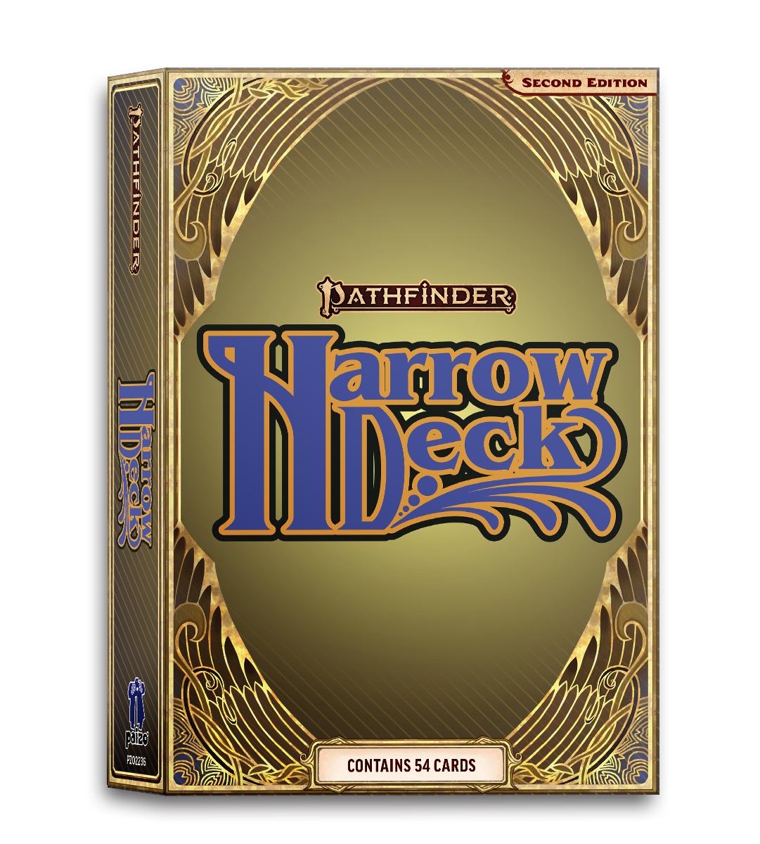 Regular Price $47.95Hurry! Only1units left in stock!STANDARD PRODUCT SHIPPINGIf you are purchasing a item that is not a Trading Card Single, you must choose the Expedited Shipping option. Failure to do so will result in a invoice for shipping or order cancellation.DISCOUNTED SHIPPINGAll TCG Singles orders over $100 will ship for a discounted rate. They will all be sent expedited with tracking in a bubble mailer and very well protected.CONTACT USYou can reach us anytime via our Facebook messenger or via email - charlottetown@exorgames.comDivine your destiny with the Pathfinder Harrow Deck, the legendary fortune-telling cards of Pathfinder’s Age of Lost Omens setting! With this 54-card, full-color set of fortune-telling cards, you’ll learn how to include the harrow in any tabletop RPG game and enhance play with immersive fortune-telling methods and other insights. With vivid all-new art, exciting printing treatments, patterned backing, and a size common to many real-world tarot decks, the Harrow Deck straddles the line between game supplement and storytelling set piece.