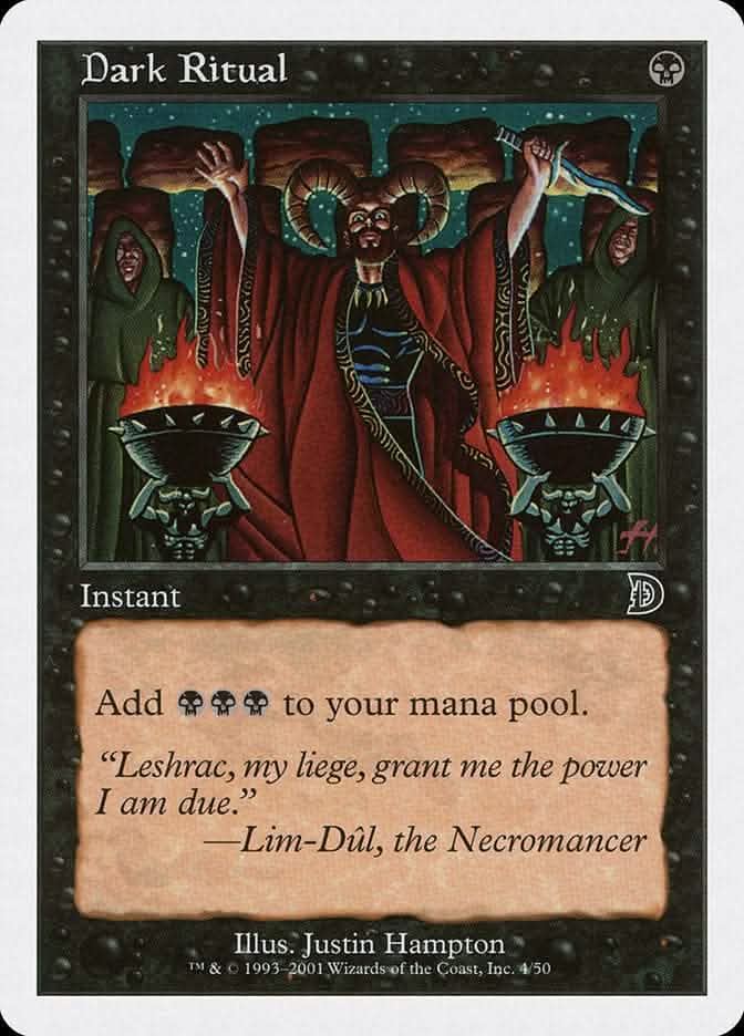 Regular Price $5.30Hurry! Only0units left in stock!STANDARD PRODUCT SHIPPINGIf you are purchasing a item that is not a Trading Card Single, you must choose the Expedited Shipping option. Failure to do so will result in a invoice for shipping or order cancellation.DISCOUNTED SHIPPINGAll TCG Singles orders over $100 will ship for a discounted rate. They will all be sent expedited with tracking in a bubble mailer and very well protected.CONTACT USYou can reach us anytime via our Facebook messenger or via email - charlottetown@exorgames.comSet: Deckmasters Type: Instant Rarity: Common Cost: {B} Add {B}{B}{B}."Leshrac, my liege, grant me the power I am due." —Lim-Dûl, the NecromancerRefund Policy: