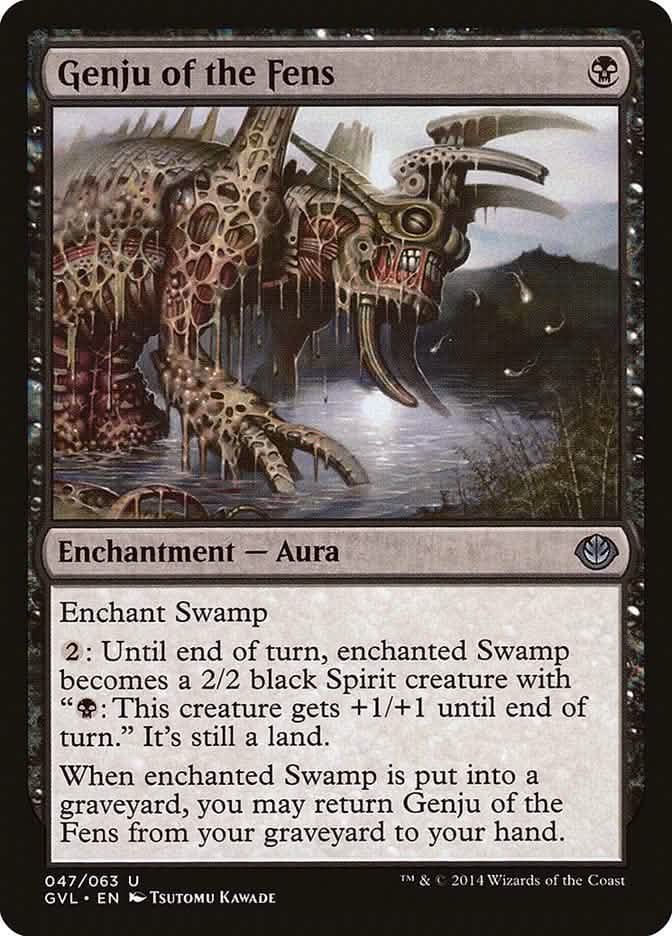 When enchanted Swamp is put into a graveyard, you may return Genju of the Fens from your graveyard to your hand.Refund Policy: