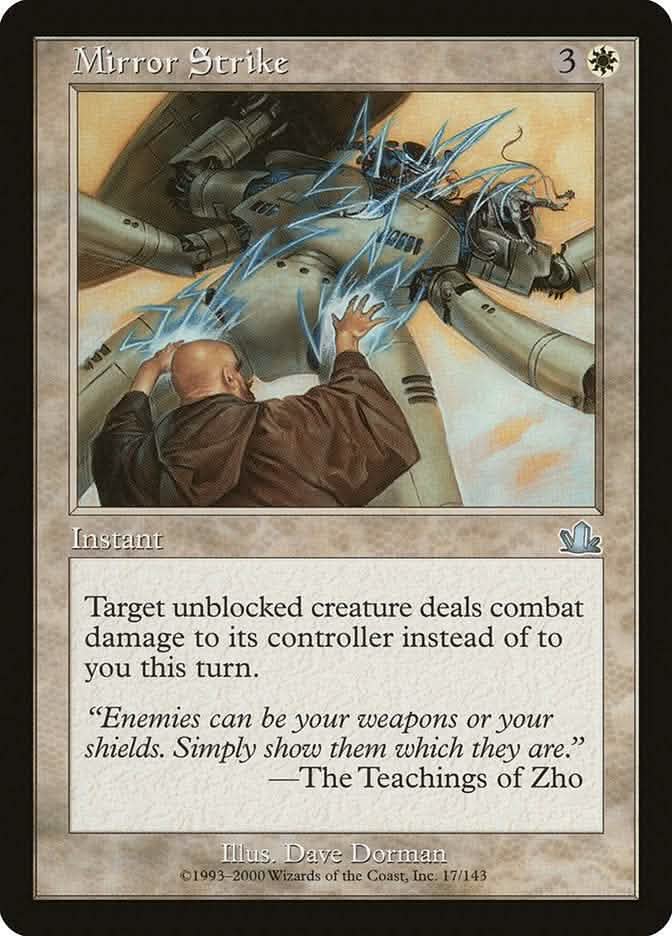 Regular Price $0.75Hurry! Only15units left in stock!STANDARD PRODUCT SHIPPINGIf you are purchasing a item that is not a Trading Card Single, you must choose the Expedited Shipping option. Failure to do so will result in a invoice for shipping or order cancellation.DISCOUNTED SHIPPINGAll TCG Singles orders over $100 will ship for a discounted rate. They will all be sent expedited with tracking in a bubble mailer and very well protected.CONTACT USYou can reach us anytime via our Facebook messenger or via email - charlottetown@exorgames.comSet: Prophecy Type: Instant Rarity: Uncommon Cost: {3}{W} All combat damage that would be dealt to you this turn by target unblocked creature is dealt to its controller instead."Enemies can be your weapons or your shields. Simply show them which they are." —*The Teachings of Zho*Refund Policy: