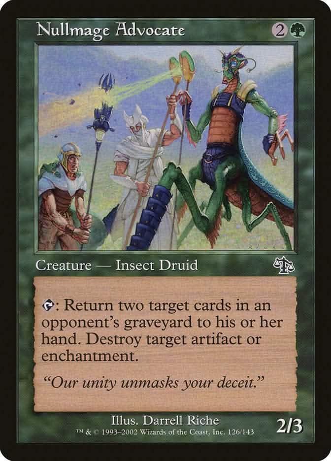 Regular Price $0.40Hurry! Only23units left in stock!STANDARD PRODUCT SHIPPINGIf you are purchasing a item that is not a Trading Card Single, you must choose the Expedited Shipping option. Failure to do so will result in a invoice for shipping or order cancellation.DISCOUNTED SHIPPINGAll TCG Singles orders over $100 will ship for a discounted rate. They will all be sent expedited with tracking in a bubble mailer and very well protected.CONTACT USYou can reach us anytime via our Facebook messenger or via email - charlottetown@exorgames.comSet: Judgment Type: Creature — Insect Druid Rarity: Common Cost: {2}{G} {T}: Return two target cards from an opponent's graveyard to their hand. Destroy target artifact or enchantment."Our unity unmasks your deceit."Refund Policy: