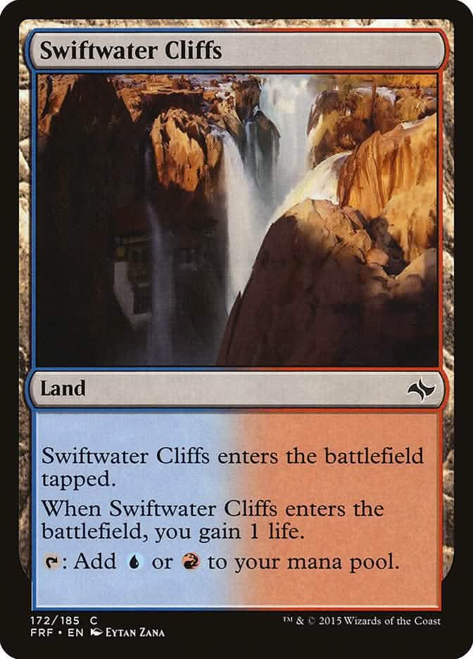 Regular Price $0.25Hurry! Only0units left in stock!STANDARD PRODUCT SHIPPINGIf you are purchasing a item that is not a Trading Card Single, you must choose the Expedited Shipping option. Failure to do so will result in a invoice for shipping or order cancellation.DISCOUNTED SHIPPINGAll TCG Singles orders over $100 will ship for a discounted rate. They will all be sent expedited with tracking in a bubble mailer and very well protected.CONTACT USYou can reach us anytime via our Facebook messenger or via email - charlottetown@exorgames.comSet: Fate Reforged Type: Land Rarity: Common Swiftwater Cliffs enters the battlefield tapped.